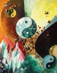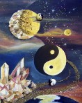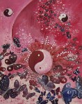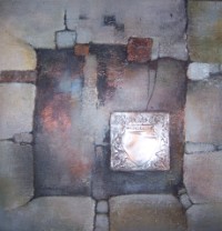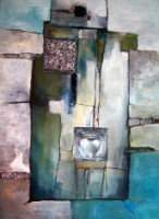 So entstehen auf der einen Seite reine Acrylbider, auf der anderen Werke, in die ich Strkturmittel, unterschiedliche Materialien wie Sande, Halbedelsteine und Blattgold einbeziehe, um eine interessante Wirkung zu erzielen.