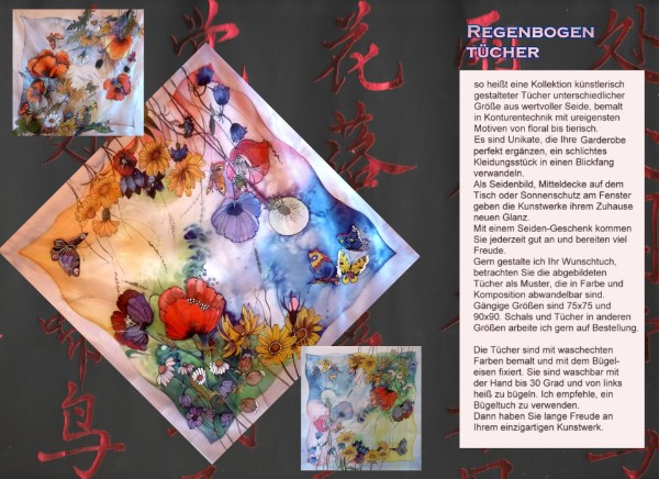 Sollten Sie sich jedoch in eines meiner Regenbogen -Tücher verlieben, weil Sie ein Geschenk für sich oder eine liebe Freundin suchen, dann treten mit mir telefonisch oder über Internet in Verbindung.